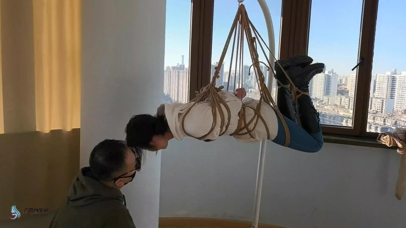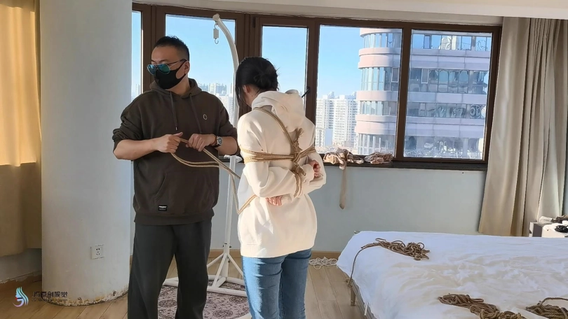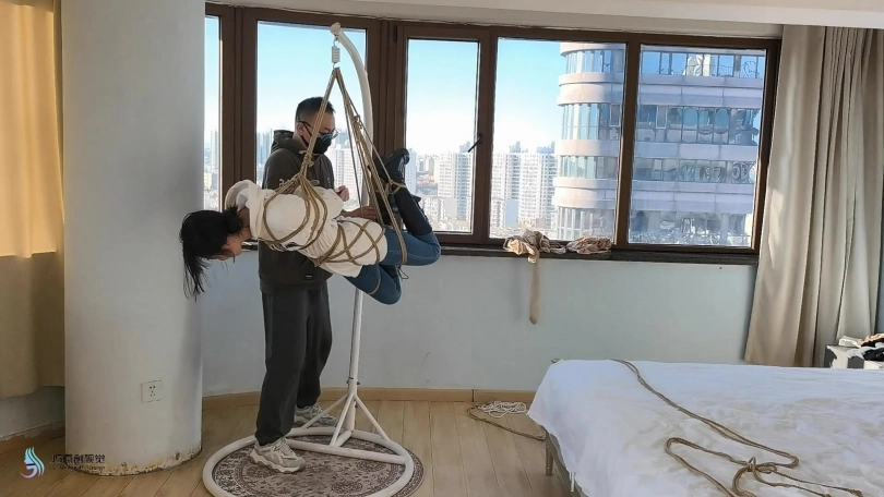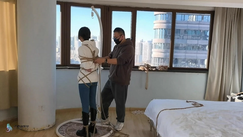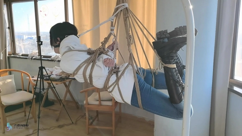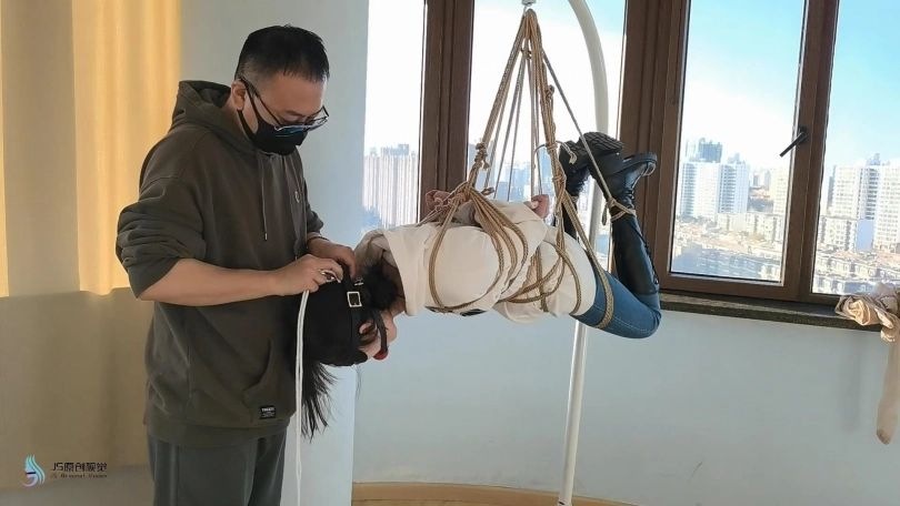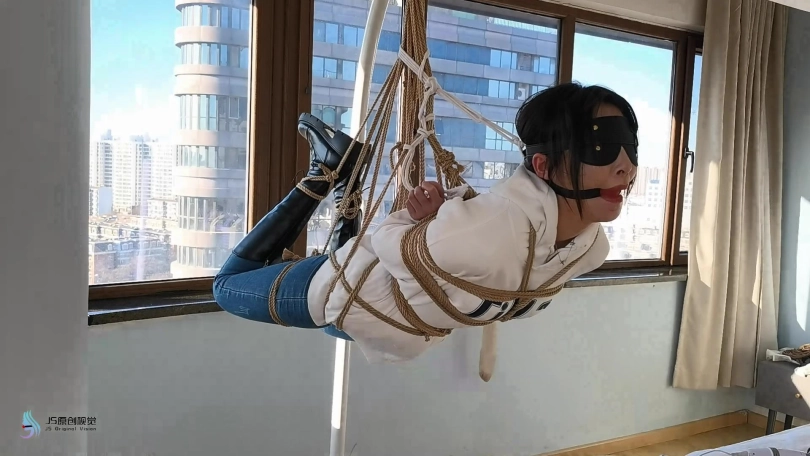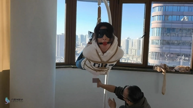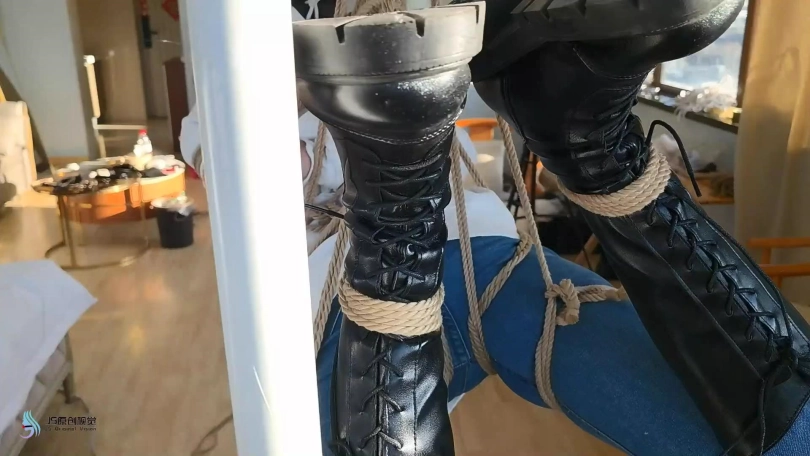 【JS】【欣妍】牛仔裤长靴悬吊捆绑口球堵嘴口水直流蒙眼棒棒刺激