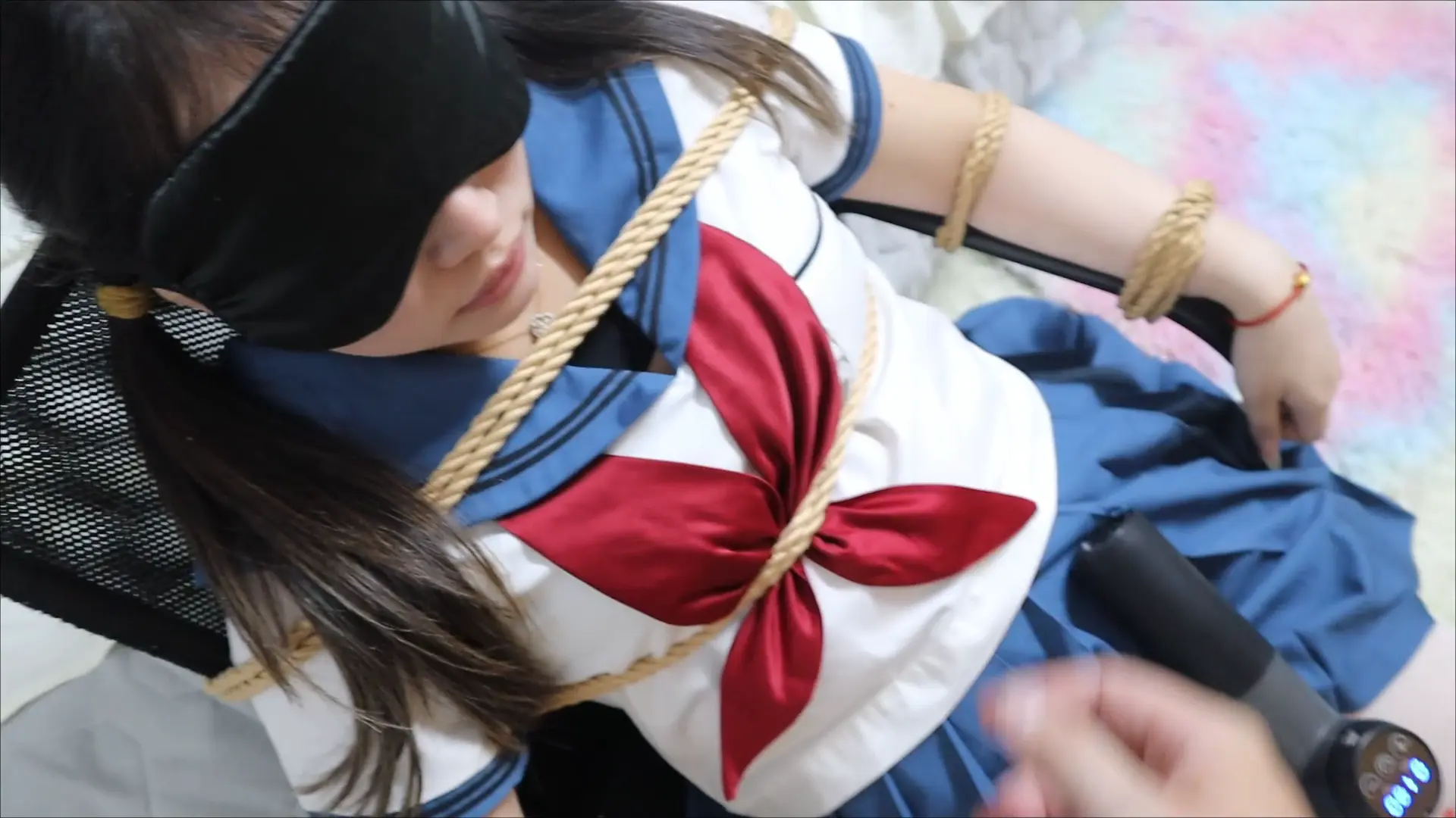 【荷仙少女】 清纯水手服萝莉椅子捆绑凌辱口枷亵玩,滴蜡在萝莉的身体上,白丝萝莉痛苦不堪的伸出舌头哭泣喊叫 把震动直接压进双腿间 玩舌+捆绑+口环+鞭打+滴蜡+TK+按摩 由一开始被动到屈服主动