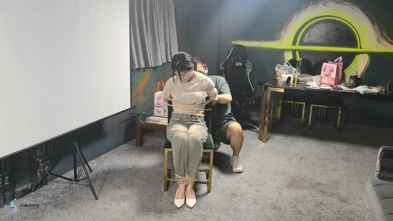 【JS】【梦琪】《少女遇险》椅子缚丝袜堵嘴胶带扎带