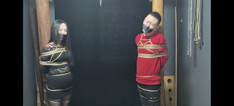 除了挣扎剧烈外,拍摄结束后,依照惯例对模特文清进行了采访,值得注意的是被绑在柱子上进行的采访,看截图中文清的笑容,就知道访谈效果很好,问题分别为: