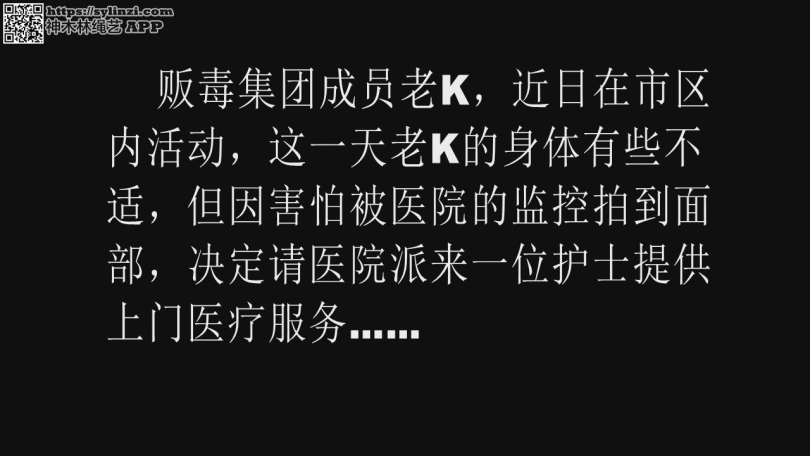 贩毒集团成员老K,近日在市区内活动,这一天老K的身体有些不适,但因害怕被医院的监控拍到面部,决定请医院派来一位护士提供上门医疗服务,但护士无意间发现了毒贩暗藏的毒品。