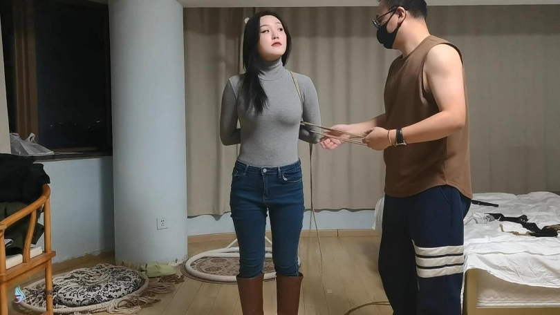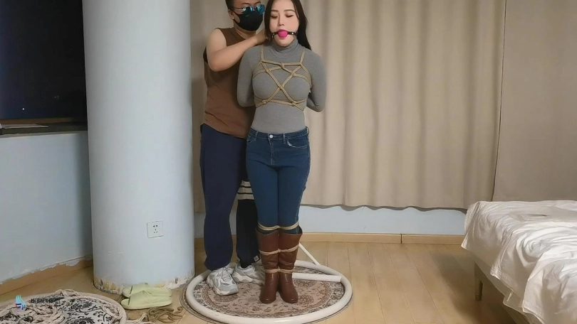 【JS】【哈妮】牛仔裤长靴站立吊绑口球堵嘴棒棒刺激