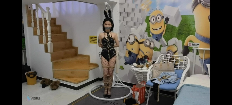 【JS】夏瑾性感兔女郎渔网袜高跟鞋站立龟甲缚多种胶带封嘴柠檬口球流口水