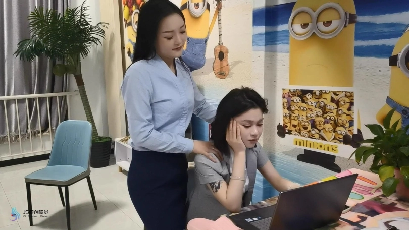 A穿着丝袜,脚上穿着粉色(或浅色)的拖鞋,大摇大摆旁若无人地走入办公室。B看到了这一幕,B现在穿的是黑色脚尖加固丝袜高跟鞋。A到了自己的工位后,翘起二郎腿,摇晃着自己的脚,摇着摇着,拖鞋甩掉了,美丽光滑完整的丝袜脚在桌下尽收眼底。(肉丝袜脚特写)A勾了一下自己的丝足,索性脱掉了另一只拖鞋,赤着两双丝袜脚开始办公。
