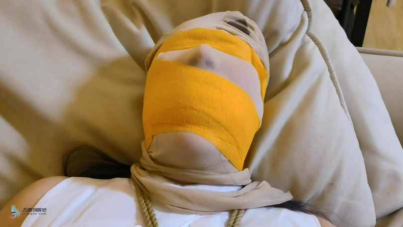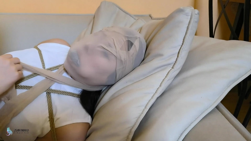 一名女小偷潜入一间房子,但她的目标并非财物,而是女性的丝袜。她拿起桌子上的丝袜疯狂的闻着。这时她听到门外传来脚步声,小偷匆忙的藏了起来。女主人开门回到家中,坐在沙发上敲打着双腿。女小偷悄悄的从后面走了过来,捂住了女主人的嘴巴。当画面再次亮起时,女主人的手脚已经被牢牢的捆绑起来,躺在沙发上挣扎着。女小偷拿着两条丝袜走了过来说“来,看看我找到了什么,这都是你没洗过的,把嘴张开”。然后她将一条丝袜塞进女主人的嘴里,再用另外一条丝袜套在她的头上,再用绷带缠绕住女人的嘴巴和眼睛,防止她吐出丝袜。