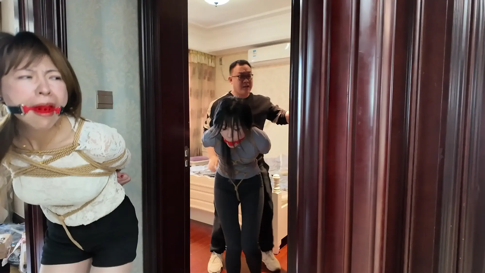 过了一会儿,母女两人被推搡着走出卧室,小智抓住机会撞到了房东想要逃走,但长时间的捆绑让她双脚无力,摔倒在了地上。房东将小智抱起扔在了沙发上,重重的锤击小智的腹部,为了让小智长点教训,房东端来一盆水,强制将小智的头按入水中,经受呛水惩罚后的小智彻底没了抵抗能力,一旁的米粒因为嘴上戴着口球,只能无助的看着女儿被虐待,无法开口求情。