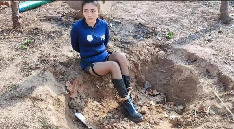 女特工不小心落入陷阱,被抓,靴子里面倒入不明液体,是否难受,又被捆绑不停虐足,最后在歹徒的威胁下说出情报,逃跑被歹徒杀害