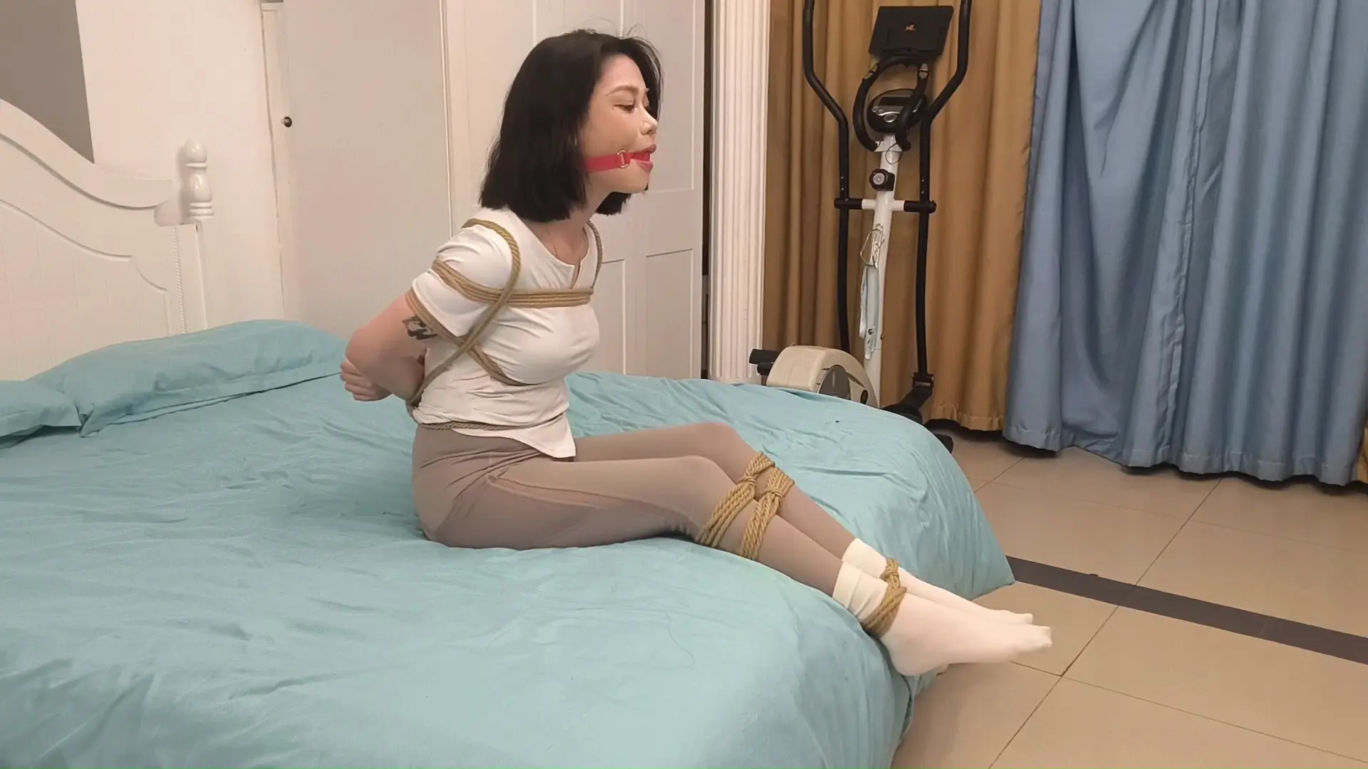 【美束映画】短发美女白袜瑜伽裤捆绑海老缚挣扎