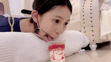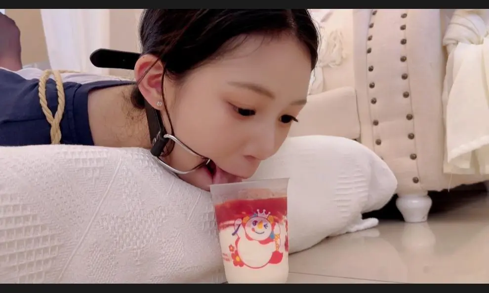 长得像网红的小姐姐驷马体验戴着口枷尝试舔冰淇淋