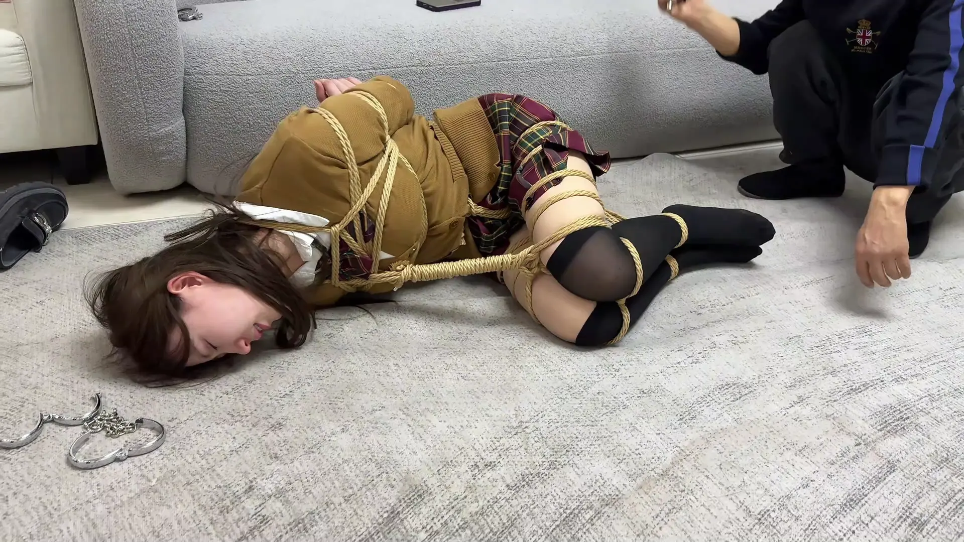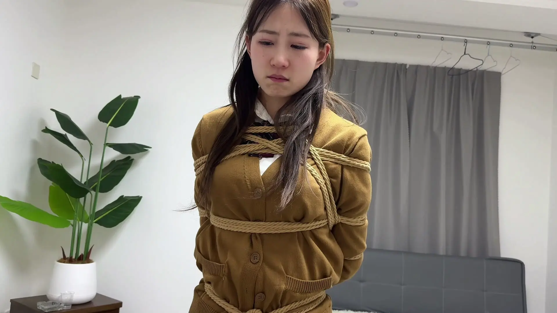 气急败坏得林长官拿出手机,播放一段视频给青雅看(内容是青雅的妹妹也遭受酷刑,这视频不用拍,只拍摄林长官给青雅看手机视频的频段即可)。
