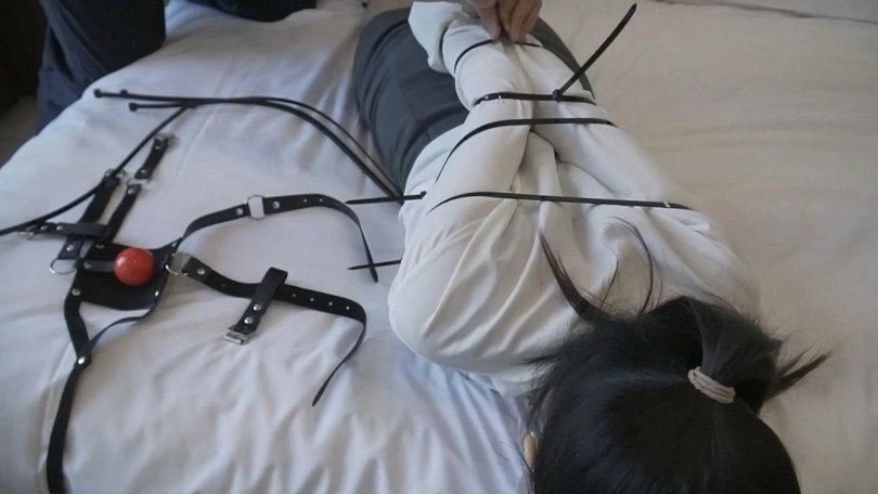 小思参加一个紧缚挑战游戏,挑战一共分4轮,第一轮在日式紧缚鸭子坐的情况下脱掉脚上的棉袜;第二轮在被扎带欧式直臂驷马紧缚的情况下用剪刀剪开所有扎带;第三轮在欧式直臂丝袜全包口球堵嘴的情况下唤醒小爱同学;第四轮在日式单腿吊的情况下取出脚底的钥匙。每轮挑战限时10分钟,如果挑战失败了则在最后的惩罚篇中加时5分钟,小思为了不让最后的惩罚篇过于漫长要努力去完成每一轮挑战。