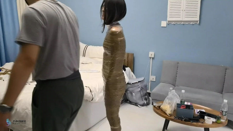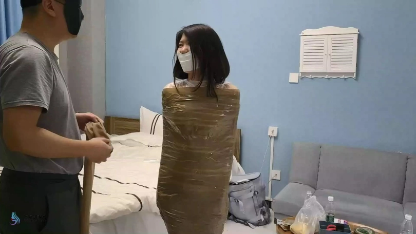 【JS】【芷若】胶带木乃伊捆绑丝袜堵嘴套头胶带封堵TD刺激