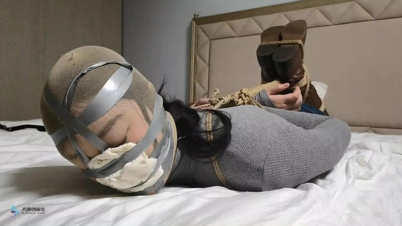 【JS】【哈妮】牛仔靴驷马捆绑丝袜堵嘴套头原味封鼻棒棒刺激