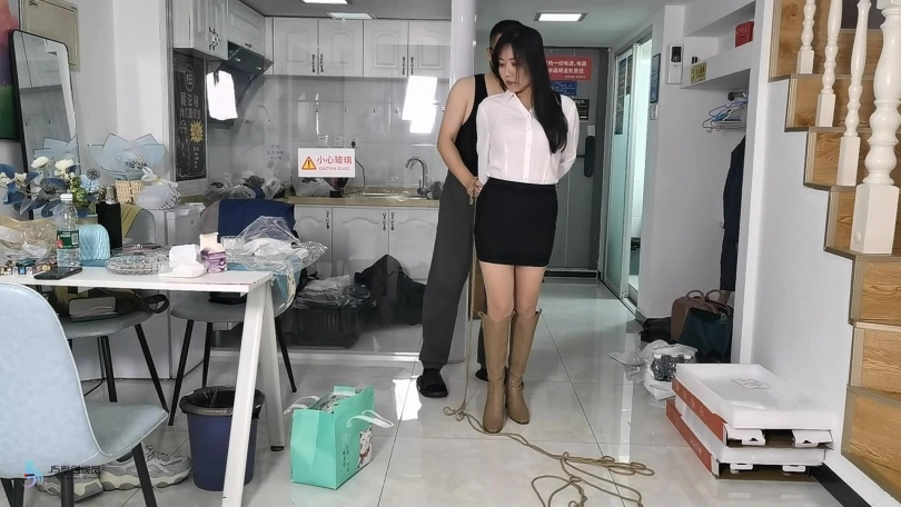 【JS】【李然】长靴驷马捆绑毛巾塞嘴胶布封堵TD震动胸棒棒刺激