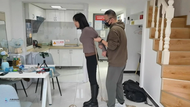 【JS】【流星客】黑色长靴女孩的欧式直臂捆绑棉袜脱靴