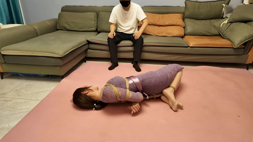 茜茜休息在家里沙发上玩手机,有人敲门,没想到被人劫持,捆绑,逼问银行卡密码,抢劫