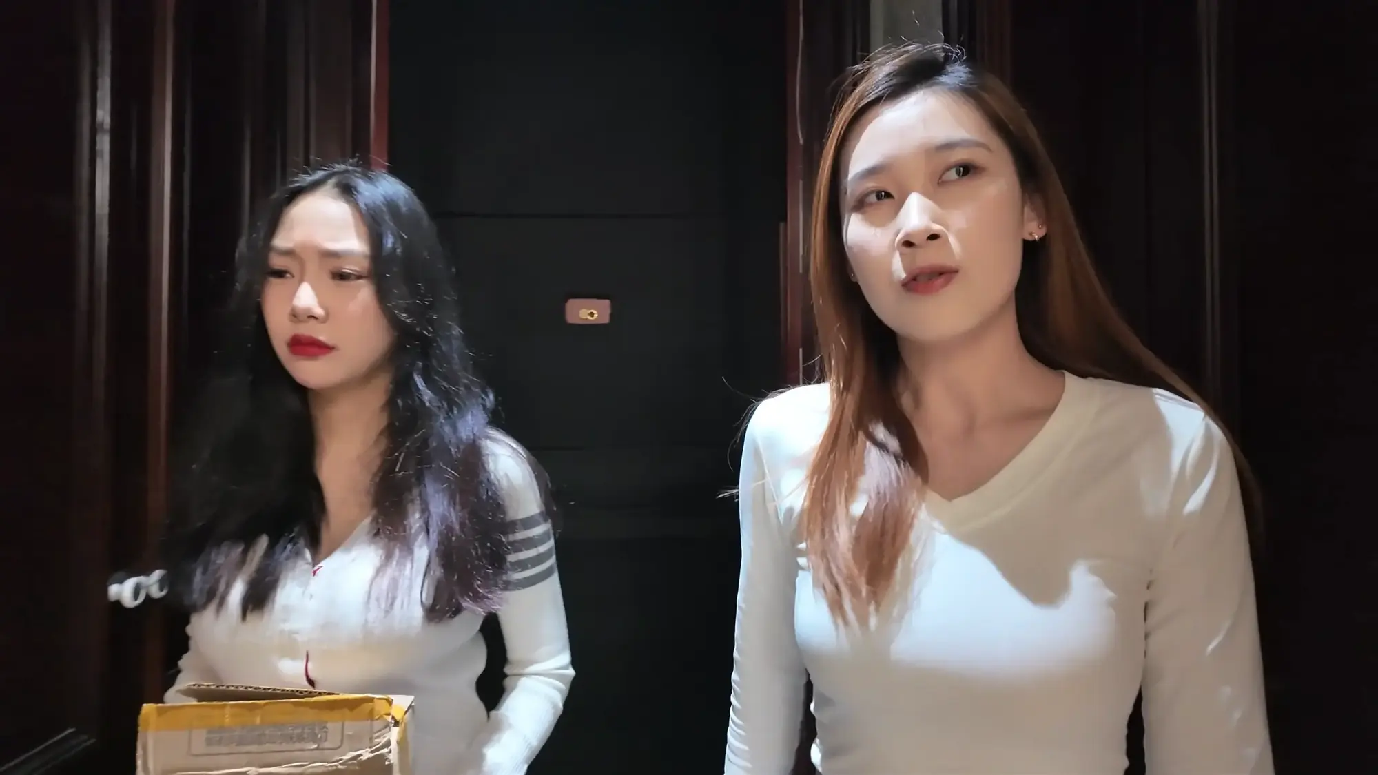 姐妹俩听说有快递员上门很奇怪,因为最近并没有网购,开了门大吃一惊,因为快递员和幻想绳文中的小七一模一样,快递员看到姐妹花颜值高身材好,口水留了一地,然后就开始yy