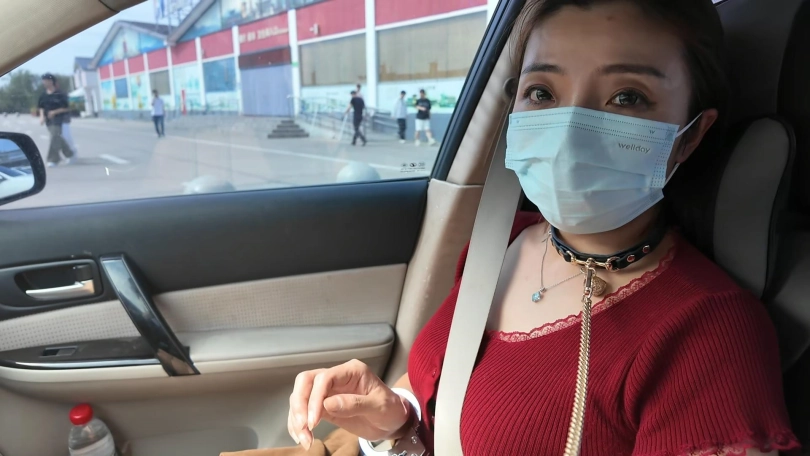 第一次带佳佳外出。车内捆绑,带项圈,下面放入td,高速服务区外面全是人,非常刺激,受不了了,带回家好好调叫调叫,顺便给小m一个惊喜,有点可惜的就没有让她带这个td逛商场...
