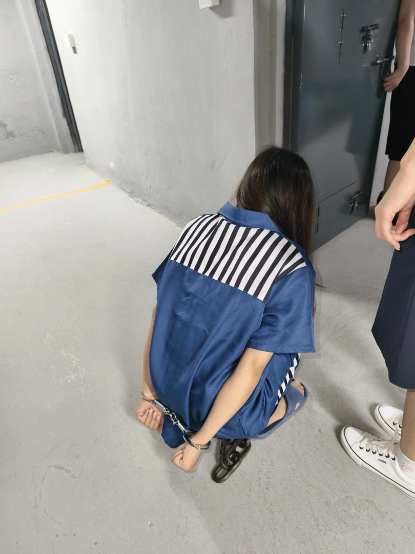【忘忧社】新模特姿姿饰演因家人生病急需用钱而铤而走险电信诈骗的程晓燕,被判刑后不老实,还打晕帽子想越狱,于是被关小黑屋,严管,带上最终的30斤镣铐。