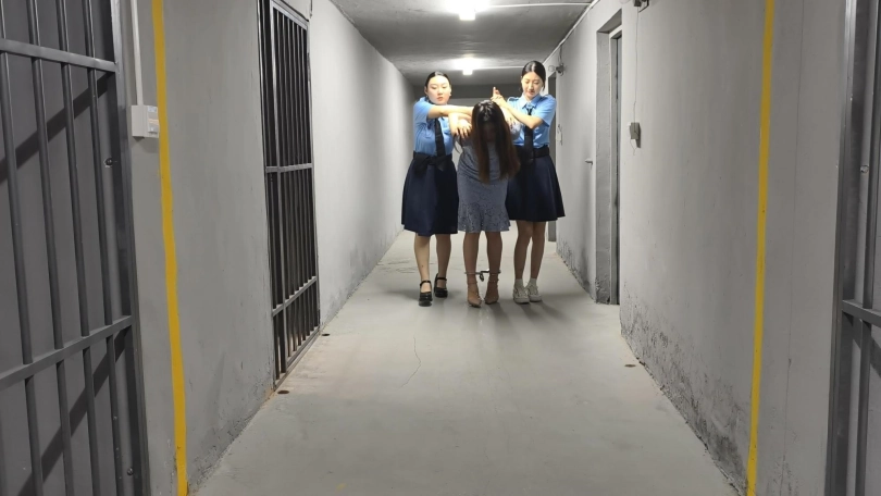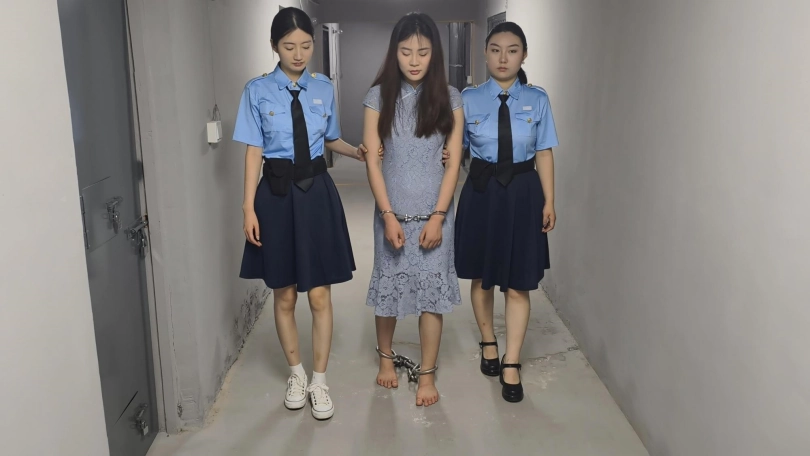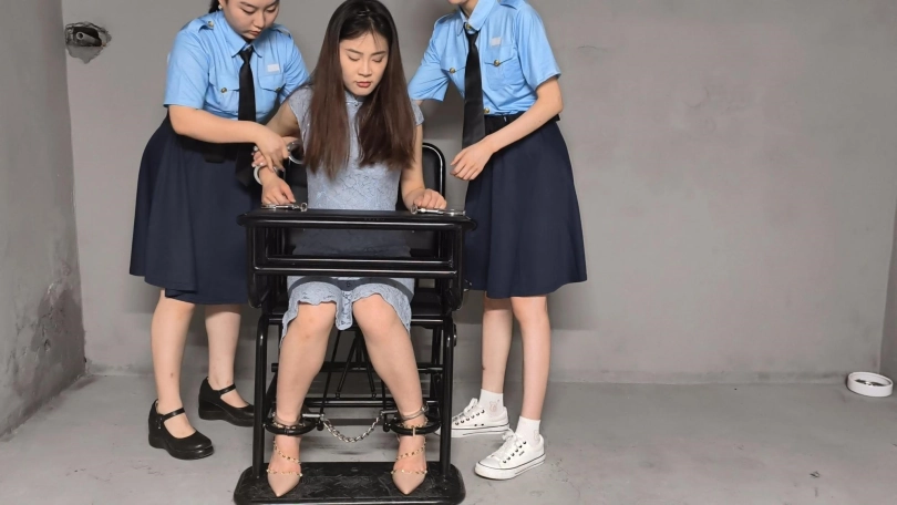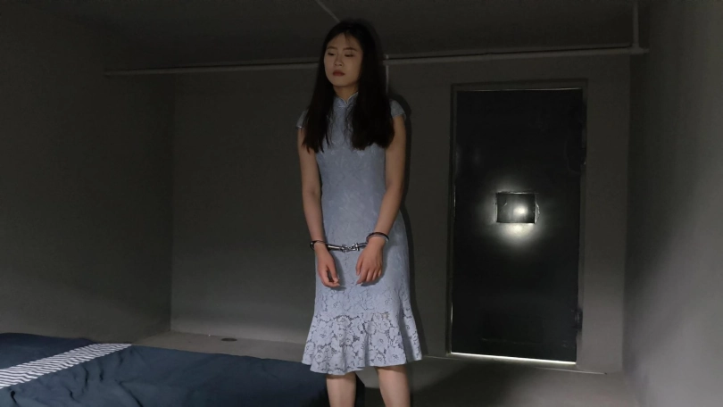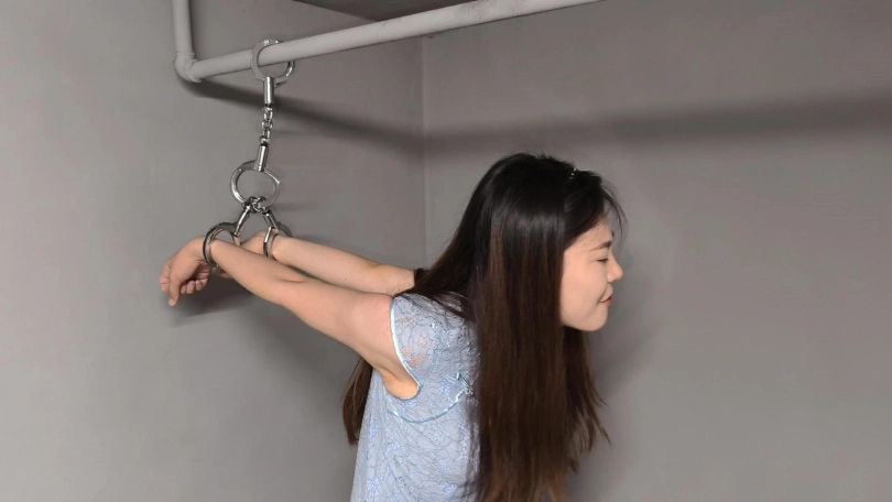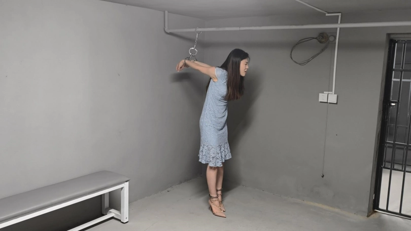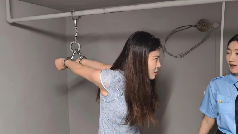 【忘忧社】美女身高170新模特依一被抓捕,吊铐,手铐脚镣,订死镣,最后被关入牢房。