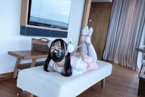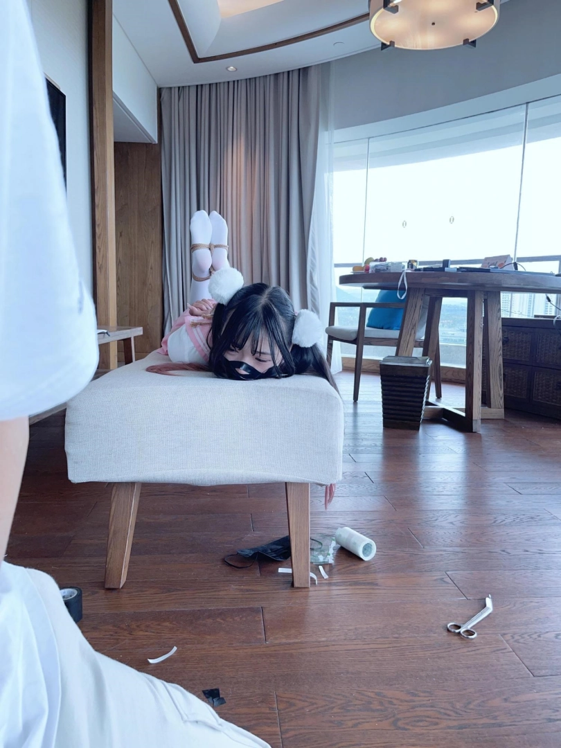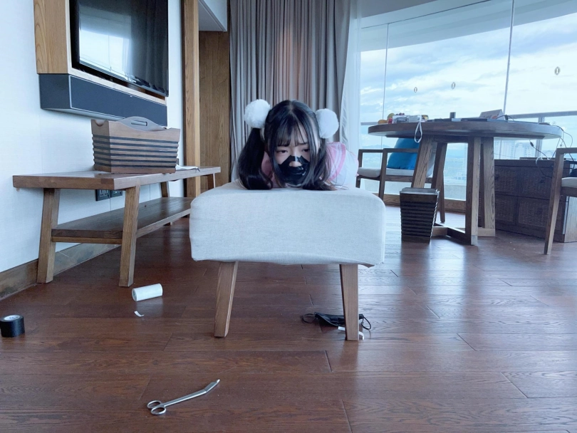 增加封嘴过程,并且在前一期的基础上把拘束方式更改为驷马躜蹄,方便大家观看全身的挣扎!大量第一人称视角!!