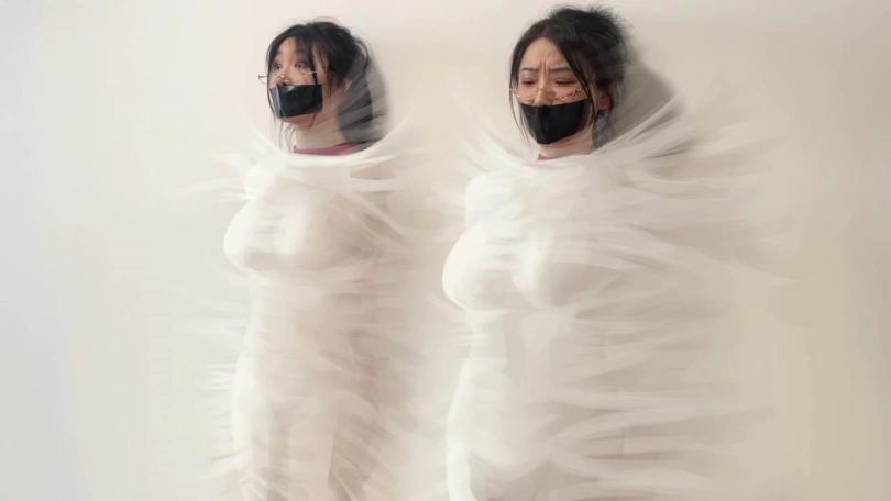 【云雀】《奇特监狱——紧身女囚02》饱和式剧情 越狱高手被紧身衣囚禁成人棍 美女们奋力蠕动 最后被狱警发现将2人严密埋入墙中只露出脑袋能活动。
