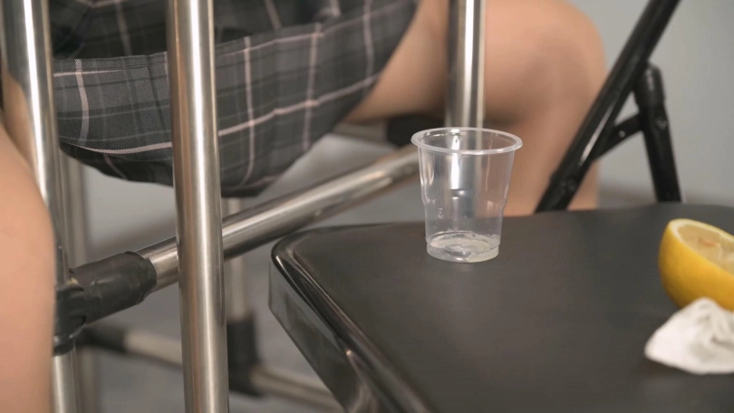 炎热的夏季,有一杯冰镇柠檬水是一件惬意的事情,那柠檬水是年轻的妹子口水做的又是怎样的感觉呢。第一步是把妹子变成柠檬口水制造的装置,穿上JK、穿上丝袜后套上奶白色棉袜和胶鞋,用特制的刑具椅子配合木枷把妹子固定住,纤细的脚腕上铐上手铐,再戴上大大的口球,用鲜榨的柠檬汁液,用吸管通过口球上的溢出孔呲进妹子嘴里,促进口水分泌,流下来的就是柠檬味的少女口水啦。