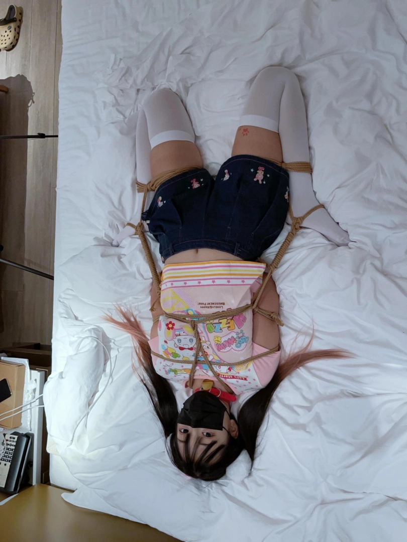 然后今天实在无聊,决定像个初心者一样 单纯的捆一下,就像第一次约绳一样,单纯的享受绳子,不包含任何其他。想到哪里就绑到哪里,安静的听挣扎时少女的喘息声和绳子绷紧咯吱咯吱的声音。