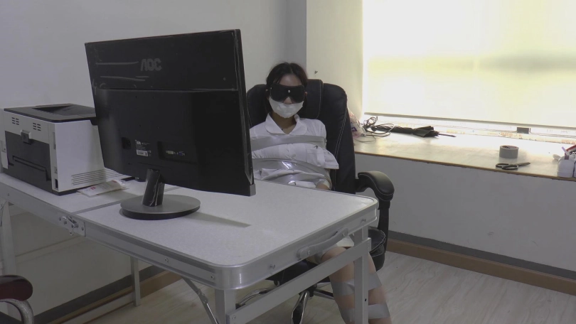 韩娜绑脚之后,又在李晗的小腿处帮了几圈,因为有李光从后面箍住李晗,捆绑进行的无比顺利。