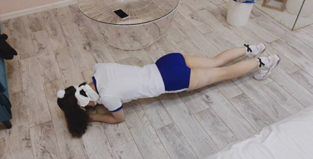 第一部绑架作品 突然进门强行按住独自在家的少女。少女穿着体操服被迫接受下跪双手抱头 土下坐 俯卧撑 平板支撑的管教。在平板支撑没力气后强行把妹子手脚交叉捆绑成驷马躜蹄的姿势后绑上股绳,并告诉妹子:“你现在有十分钟的时间进行挣扎脱缚,如果脱缚失败就要接受严厉的惩罚。”