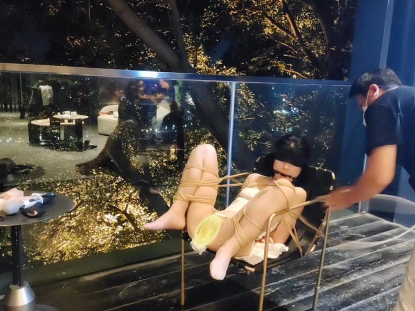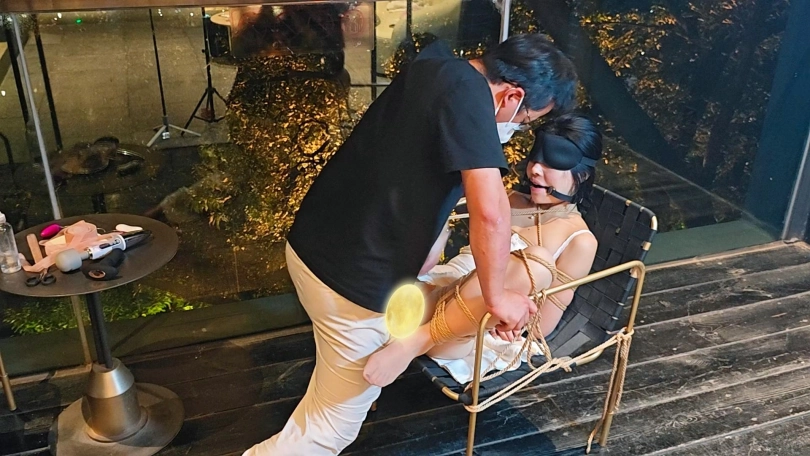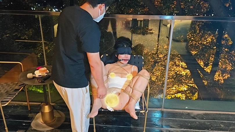 一个有大阳台,阳台下面就是车水马龙的过往行人和车辆的酒店,这个m想要露出又不敢,就只好放置在离行人和车辆近一点的大阳台上了,蒙着眼睛还时不时的转过头往下看,深怕被发现了,可以她什么也看不见!独自放置在阳台装上玩具许久,开始没有绑脚,想自己进屋里奈何什么也看不见,只能瘫坐在地上呻吟,许久过后,大叔从外面回来开始接下来的一系列调教!强高,口舌也学得很快,全程害羞的不得了,最后还是被火力全开!