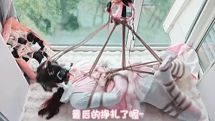 即便是用尽全身力气挣扎,也是无济于事哟,急得露露在床上蠕动打滚!