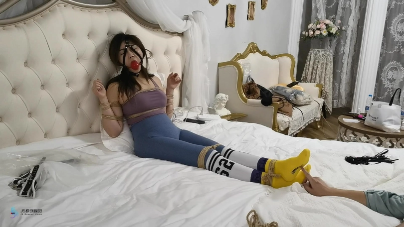 【JS】【艾菲】调戏床上的美少妇瑜伽服棉袜马甲扣球鞭打恋足TD刺激