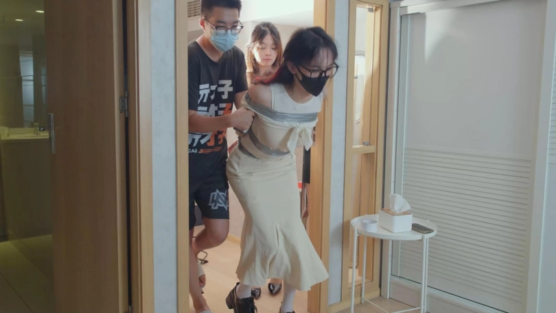 【红鲤鱼】绑架cd后继续绑架女同伙,胶带全身捆绑