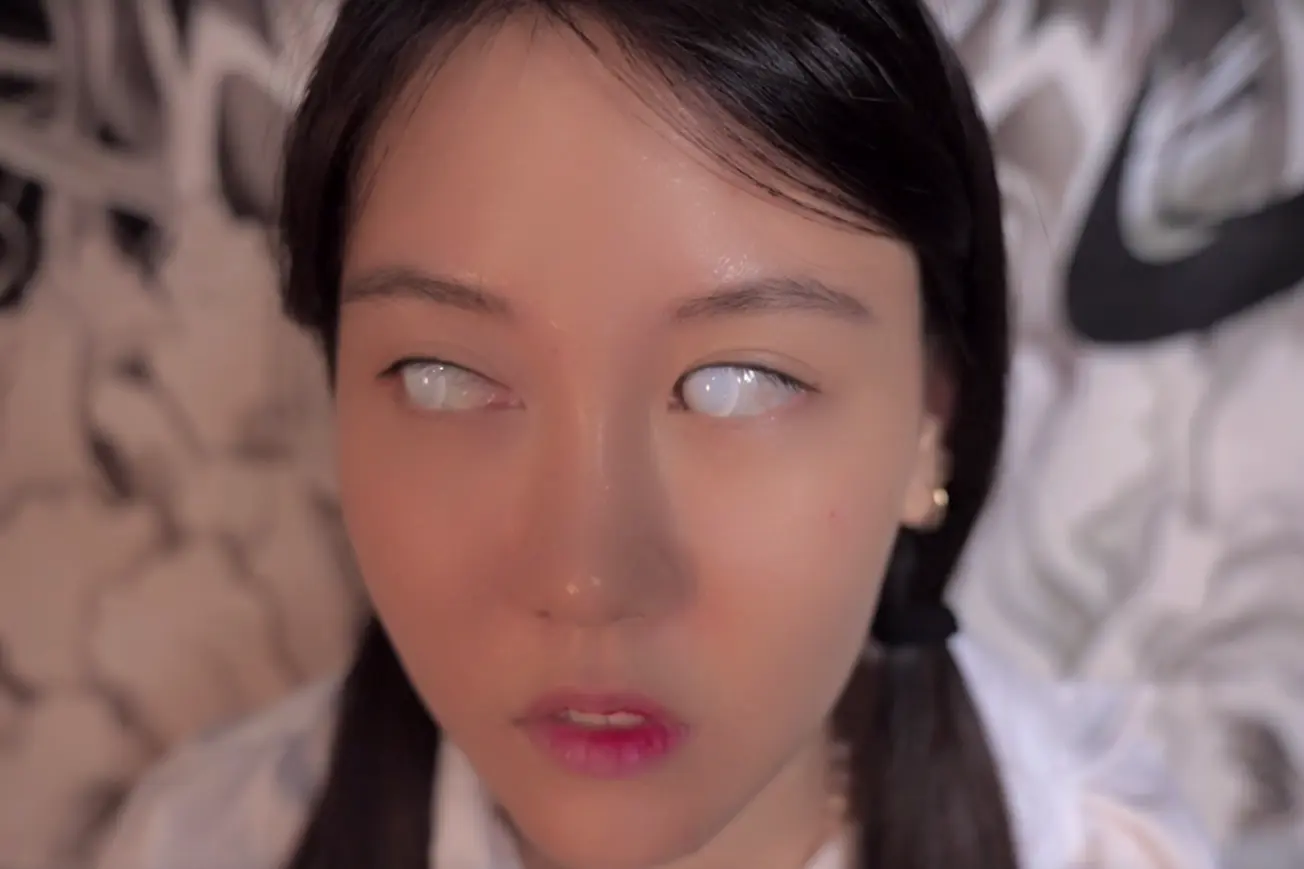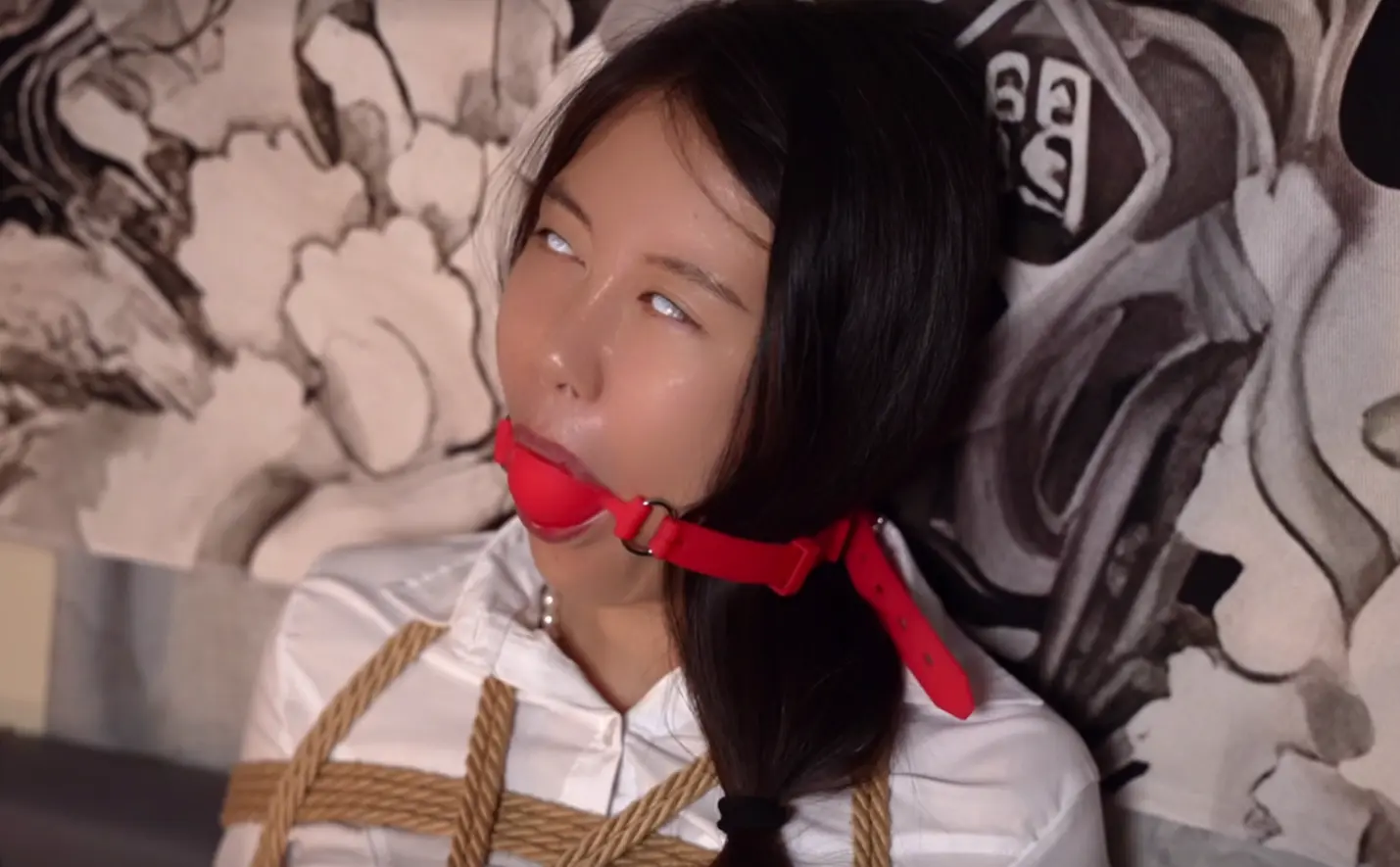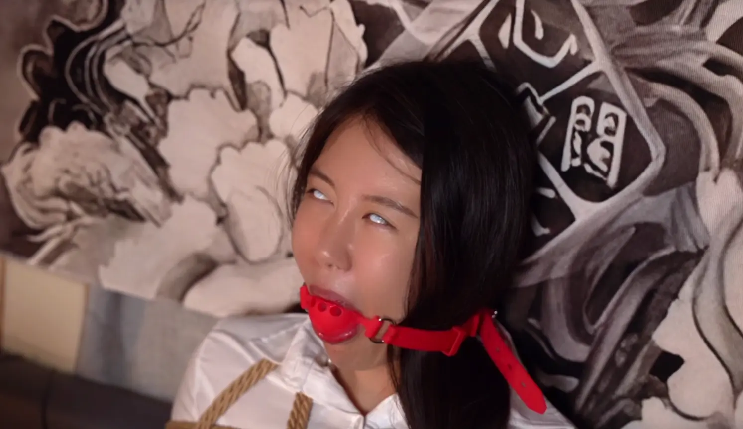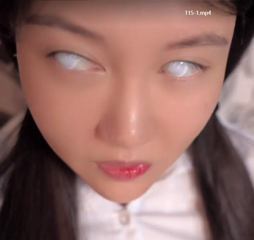 带上白色全遮隐形眼镜,用丝袜脚触摸道具,
