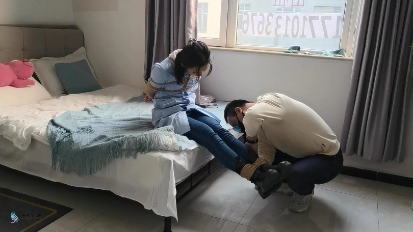 绑匪接到一个绑架女医生的任务。他伪装成病人去接近女医生,趁对方不注意,用喷过药的布捂住了女医的口鼻,对方只是挣扎了几下就安静下来。男人将女医捆绑起来,嘴里塞上口球。当女医醒来后,男人将女医的靴子脱下,让她趴在床上,紧紧的绑了个驷马的姿势。为了消耗女医的体力放置逃脱,男人扒掉女医的裤子,在裆部塞上一个TD持续震动。女医被刺激的发出呜呜声。
