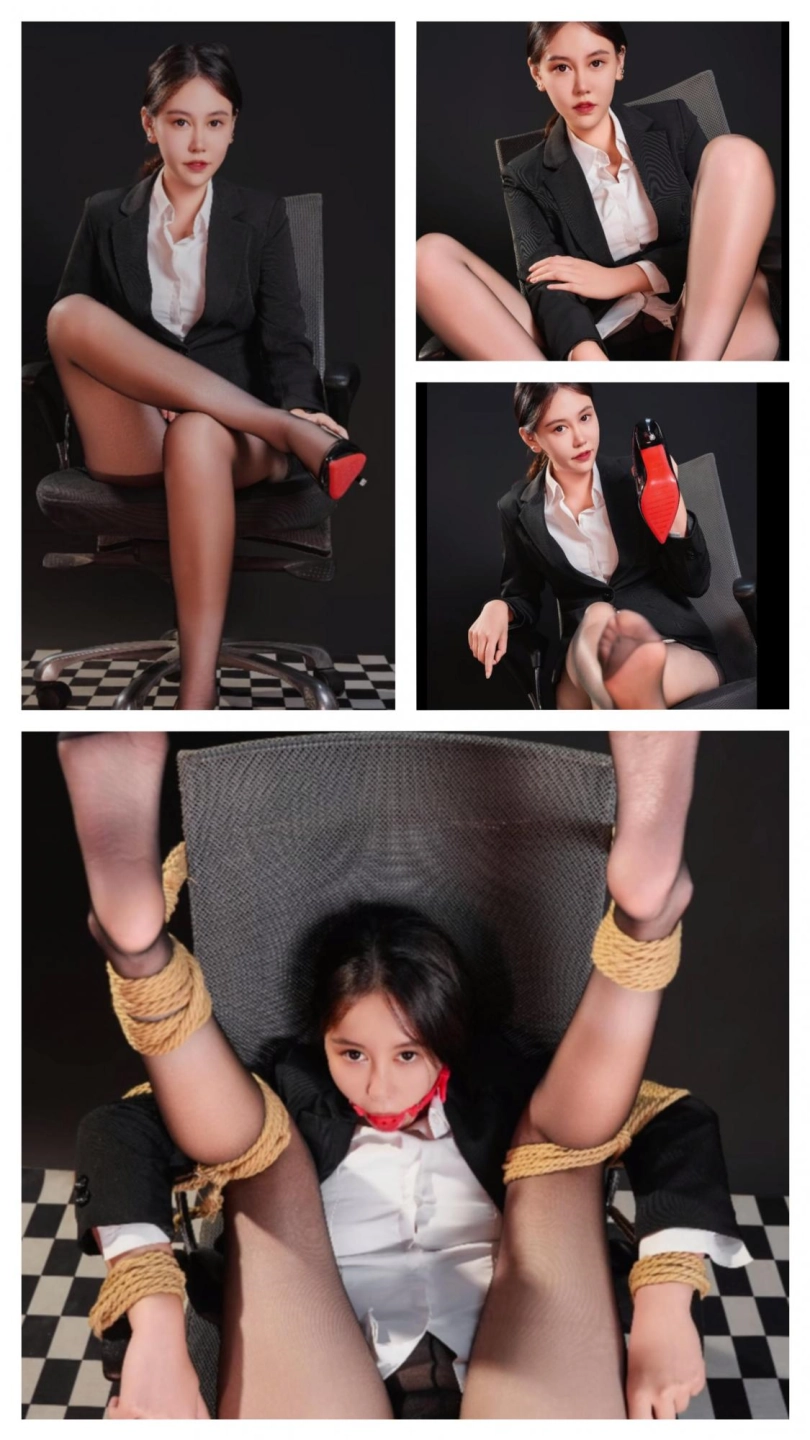 与工作椅(电脑转椅)束缚在一起,捆绑样式如图所示