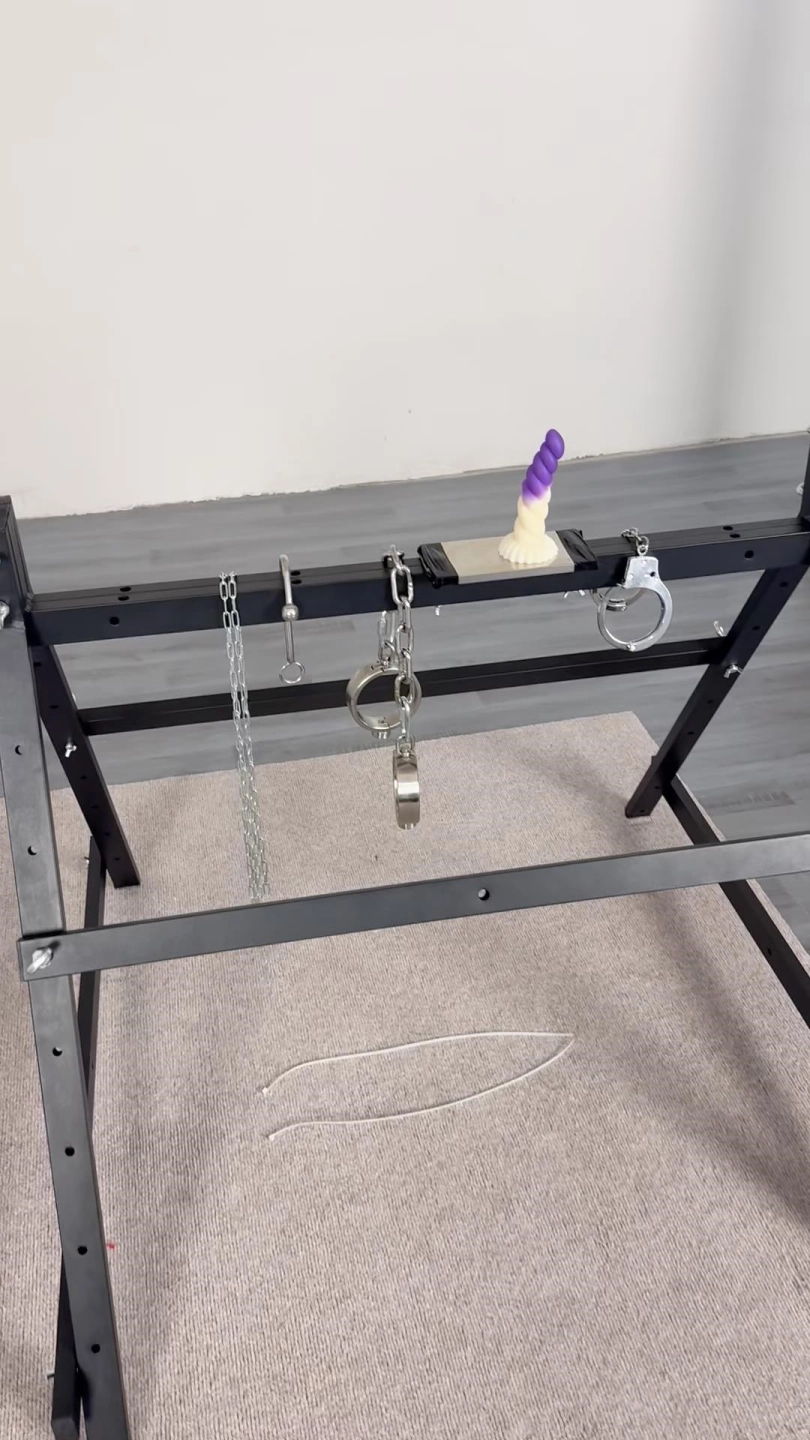 欲梦骑在木马上双手举过头顶铁链从背后链接到肛勾处,迫使欲梦挺直腰杆,想放松的时候就会牵扯到肛勾,小X插在木马上的YJ里在木马上罚站1小时,胸上滴的全是口水,看她表现不错,给她在木马上直接3次QG。