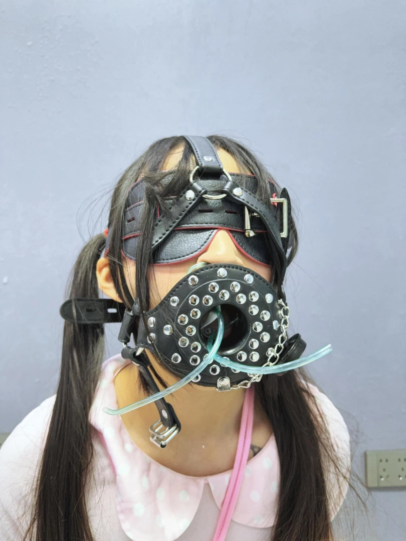 【头/面部拘束】:医用鼻管从鼻孔伸进去,从鼻腔穿过喉咙推到口腔伸出,然后从马具口枷伸出来。试过的都知道,鼻管的难受硬核程度是鼻钩的几十倍!放大声音可以听到妹子喉咙里因为鼻管刺激的咕噜声~