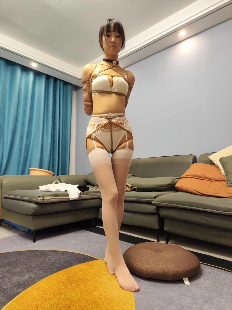 让晓倩里面穿上黑色内衣吊带丝袜,外面穿职业装,绑好跪在房间等候、鞭打,爬行、体罚马步蹲,最后换装白丝内衣加白色吊带袜,一场视觉盛宴,不得不说,晓倩的身材是真好,非常适合内衣调叫