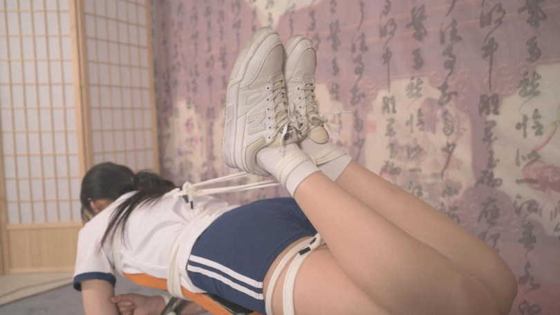 妹子穿上运动装,那股清新的味道立马就有了,特意让她找了双穿了挺久的运动鞋,让味道更足一些。绑成这样,不玩个TK太可惜了,妹子有几个特别痒的地方,碰到了就跟过了电似的。