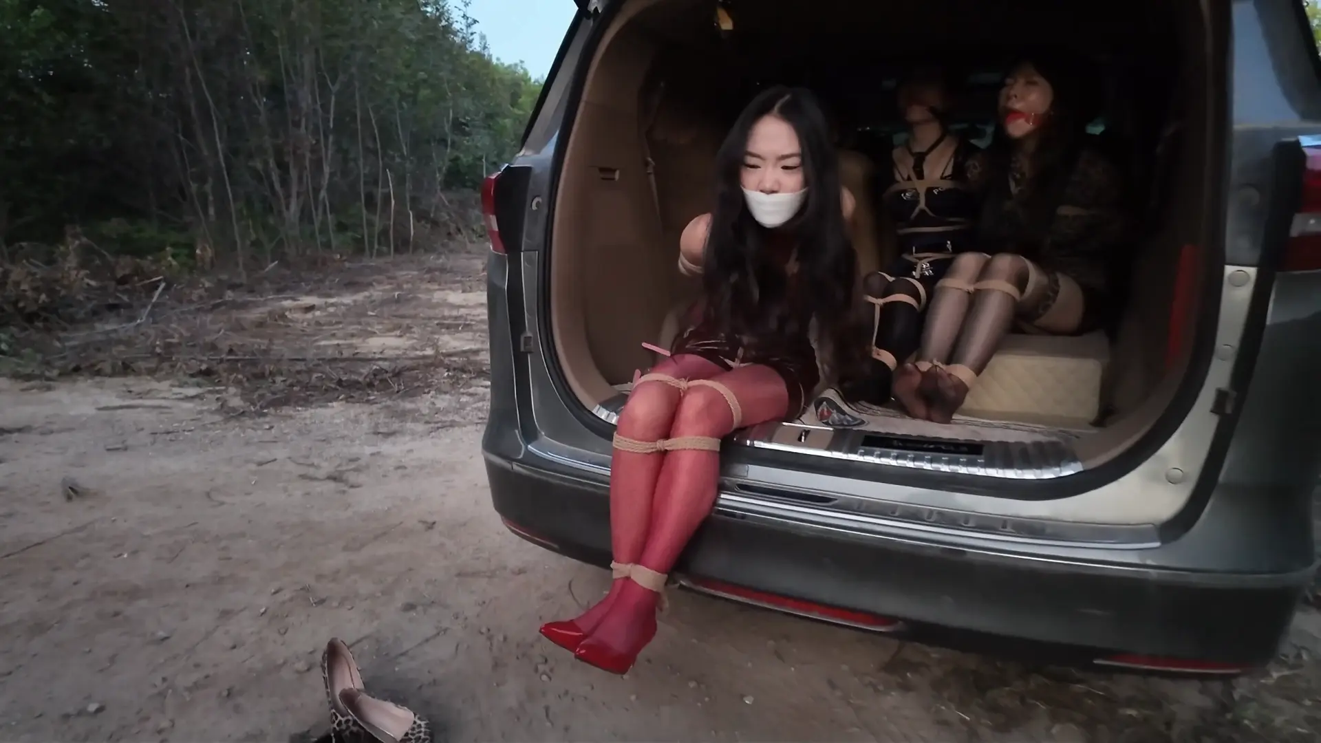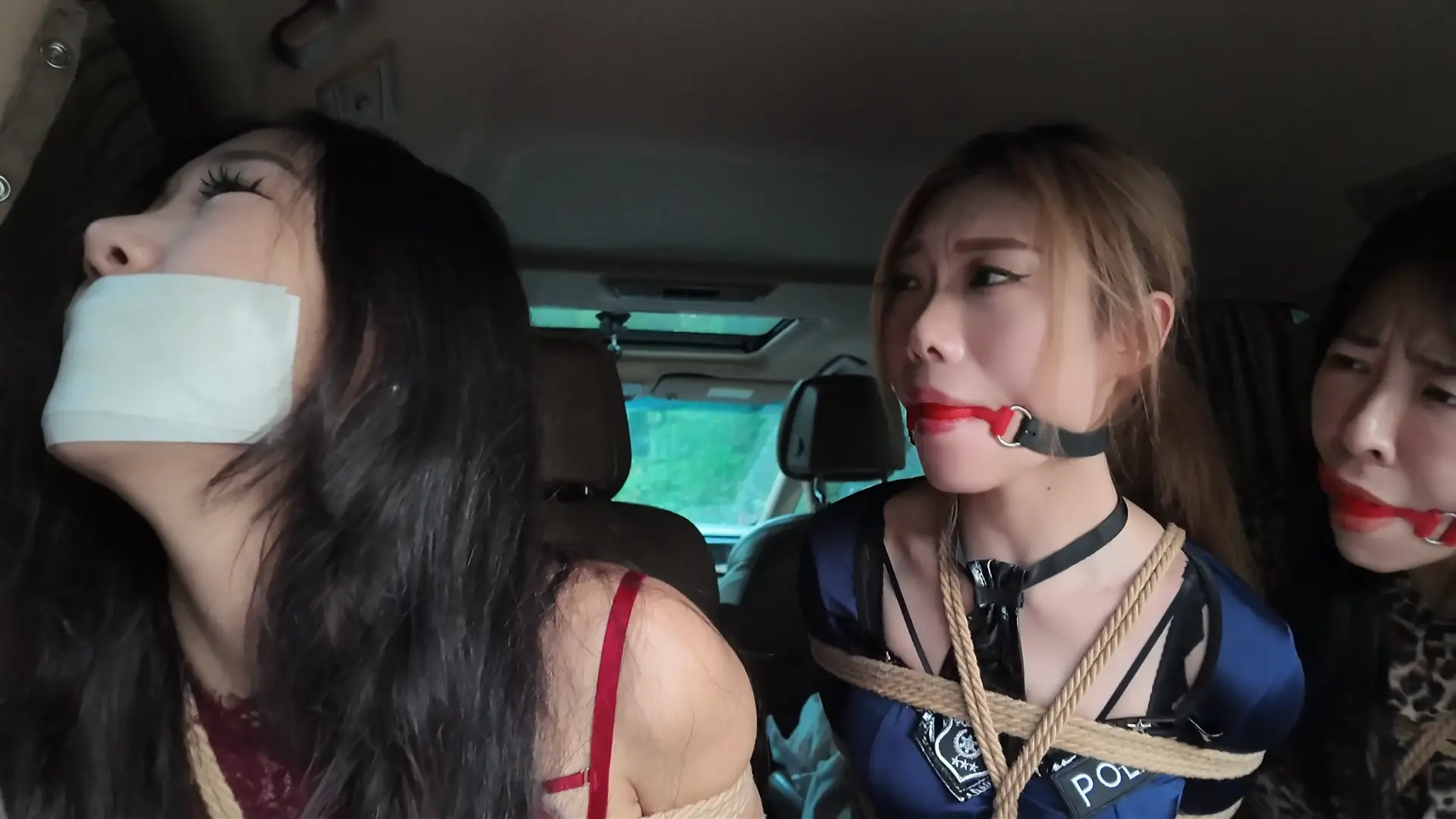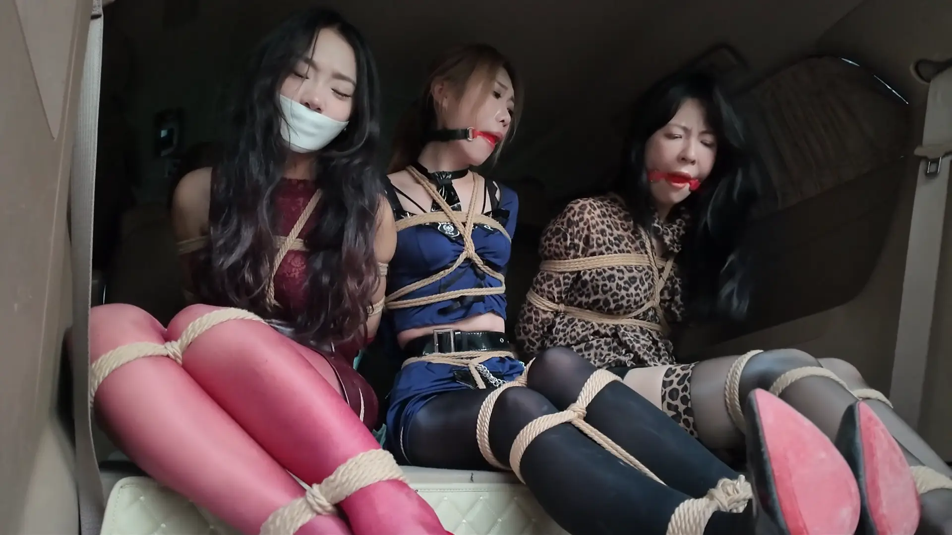 三人只能呜呜挣扎,但是现在谁又能来救她们呢?