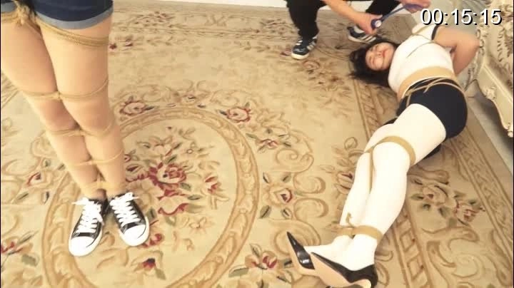绑完之后,老王开始玩弄韩毅,说到,这个妞真带劲。便挠他脚心,摸她腿。过了一会男人走后,两姐妹开始了剧烈的挣扎,想相互合作解开绳子,两个美女想用嘴巴解开对方的嘴,又想有手解开对方的绳子,但是,最终也没有什么作用。不久,韩毅太累了,便睡着了,