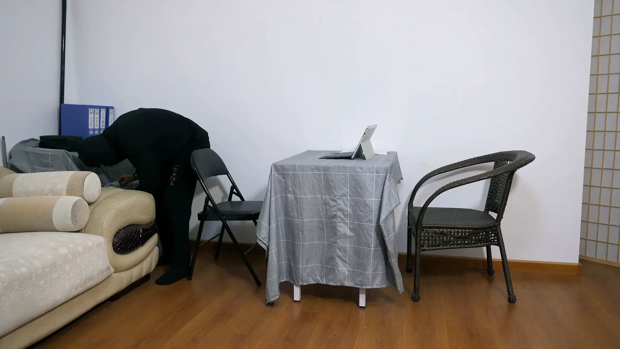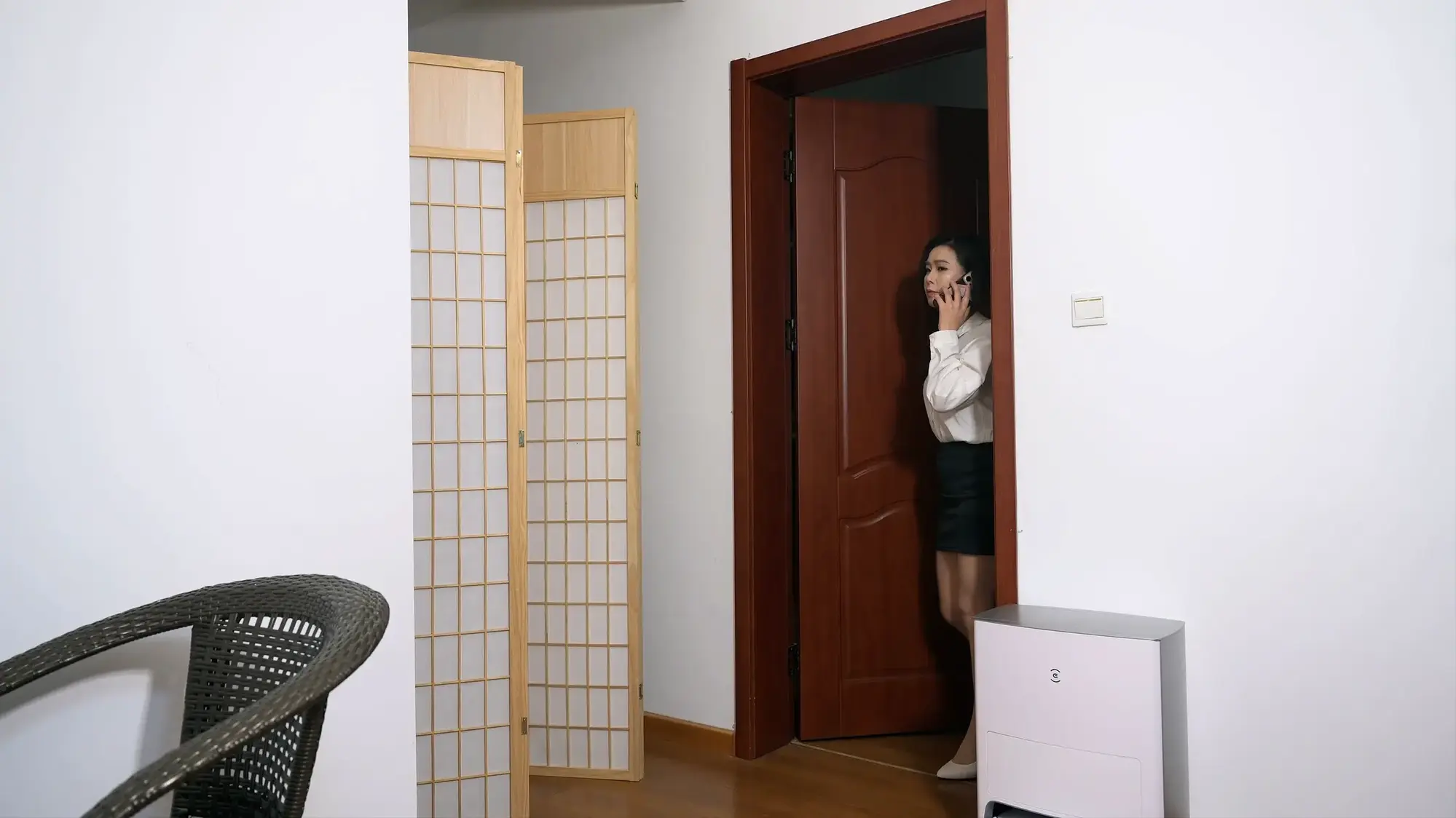 故事梗概:一小偷在潜入一家公司偷窃,正巧遇到女老板进门,小偷哀求女老板放他一马,但女老板不为所动,坚持要让他受到法律制裁。小偷狗急跳墙捂晕了老板,并用胶带封住了她的嘴。女老板挣扎很长时间,终于靠着沙发起身,慢慢的跳到大门口准备求救,不料被小偷发现了,小偷将她牢牢绑在椅子上,带着财物离去。女老板在椅子上拼命挣扎,不知过了多久,一个下属回到公司,看见了被绑在椅子上的女老板,揭开女老板嘴上的胶带。 女老板告诉下属,公司进小偷了,让他赶快找人。没想到下属听完后却重新用胶带封住了他的嘴。她趴在女老板耳边告诉她,觊觎她的美腿很久了,于是开始抚摸老板的丝足、丝腿,挠她的脚。并拍了照片,并告诉老板,一会忙完在给她解开,然后留下老板一个人在办公室挣扎。有了照片做威胁,女老板屈辱的经常接受下属的无理要求,经常在工作的时候,下属在桌下贴脸玩弄她的玉足美腿。
