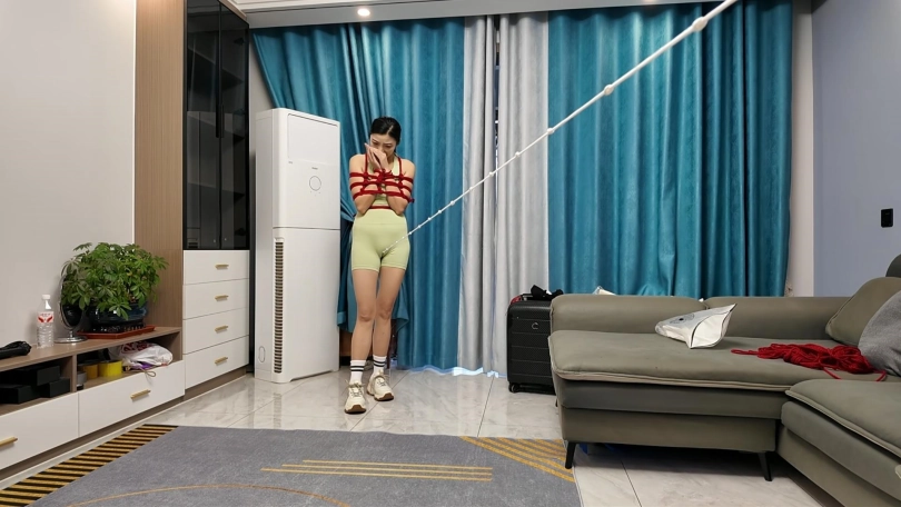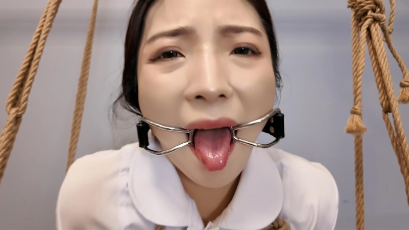 瑜伽教练玩德州扑克输了,按约定换好服装,被绑成对应的姿势,M腿吊,还要被不锈钢口伽勒嘴,这个姿势难受至极,伸出舌头痛苦挣扎,接下来换上对应的瑜伽服,走绳,细细你尼龙绳上打满了节,深深的勒进下面,在指令中前前后后的来回摩擦,嘴上还被带了口球,终于在来回摩擦中达到了高超