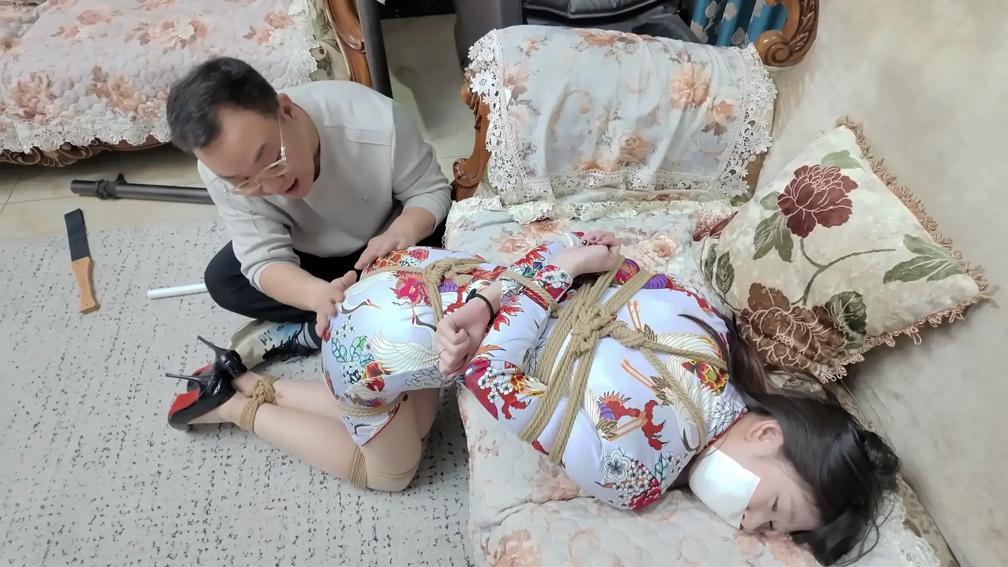 婧伊小姐姐,身形高挑的她搭配修身紧身旗袍特别好看,虽然她瘦瘦的,但是绳子勒紧之后屁股还是显得蓬蓬的,打屁股那段特别爽,她属于那种柔柔弱弱感觉的女生!
