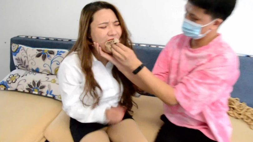 弟弟从茶几下拿出一条薄肉连裤袜,一下子把整条堵进沐子的口腔,沐子连出声的机会也没有,不停发出「呜呜」声。