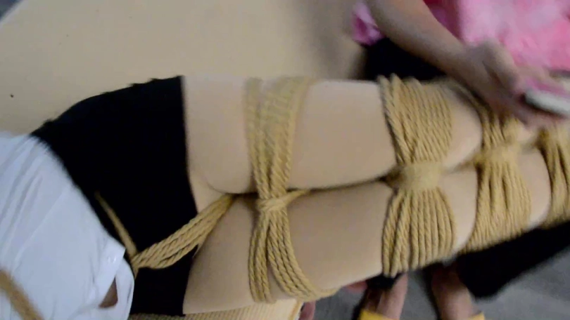 沐子的嘴里不停发出着呻吟声,弟弟拉高沐子的包臂裙,在沐子的裆部绑了一条紧紧的股绳,沐子过程中一直向下望着自己的裆部一直摇头表示停手。