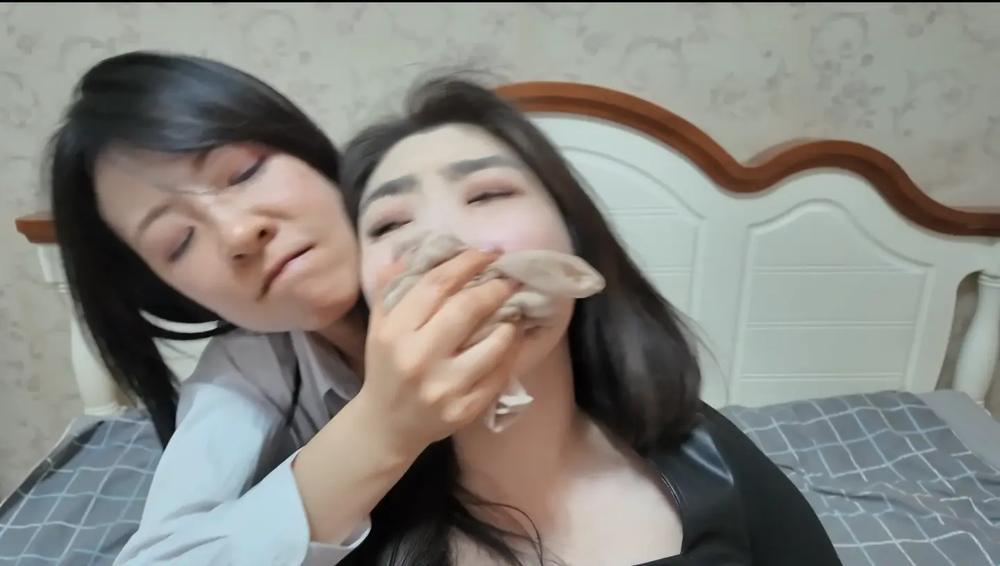米粒好不容易挣脱了绳子的捆绑束缚,想要用原味丝袜捂闷弄晕雨诺,来个绝境反杀。一时大意的雨诺阴沟翻船,被米粒捂晕了过去。记仇的米粒也开始反复用枕头和丝袜捂闷、丝袜勒颈的方式折磨起了雨诺,恶人自有恶人磨,最终雨诺被米粒驷马缚在床上难以挣脱,难逃法网。