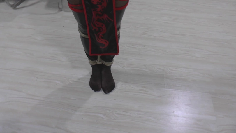 炸弹魔把女忍者四马攒蹄绑起来,然后蒙住眼睛,堵住嘴,炸弹也绑身上,然后就走了。